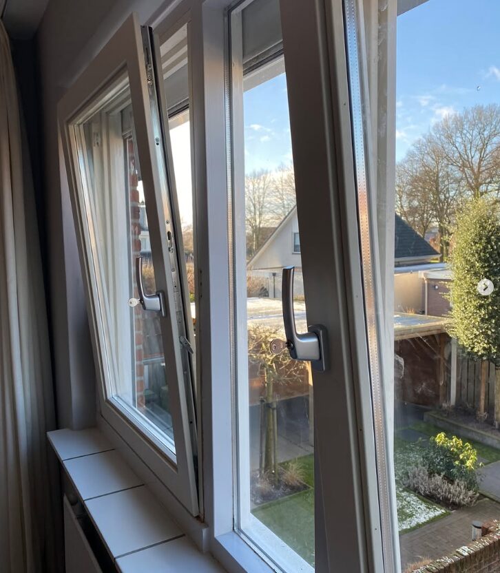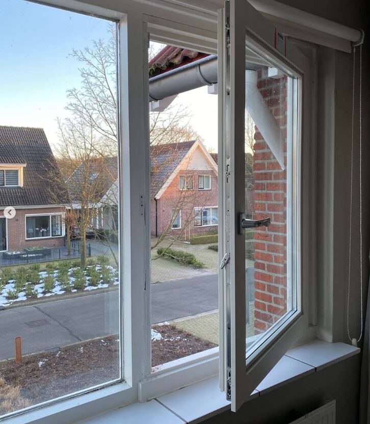 Ideaal voor het plaatsen van inzethorren en natuurlijk heel makkelijk om de ramen schoon te maken, omdat ze nu naar binnen opengaan en daardoor de buitenkant gemakkelijk bereikbaar is geworden. Dit is ook mogelijk om te realiseren bij ramen die naar buiten open gaan!